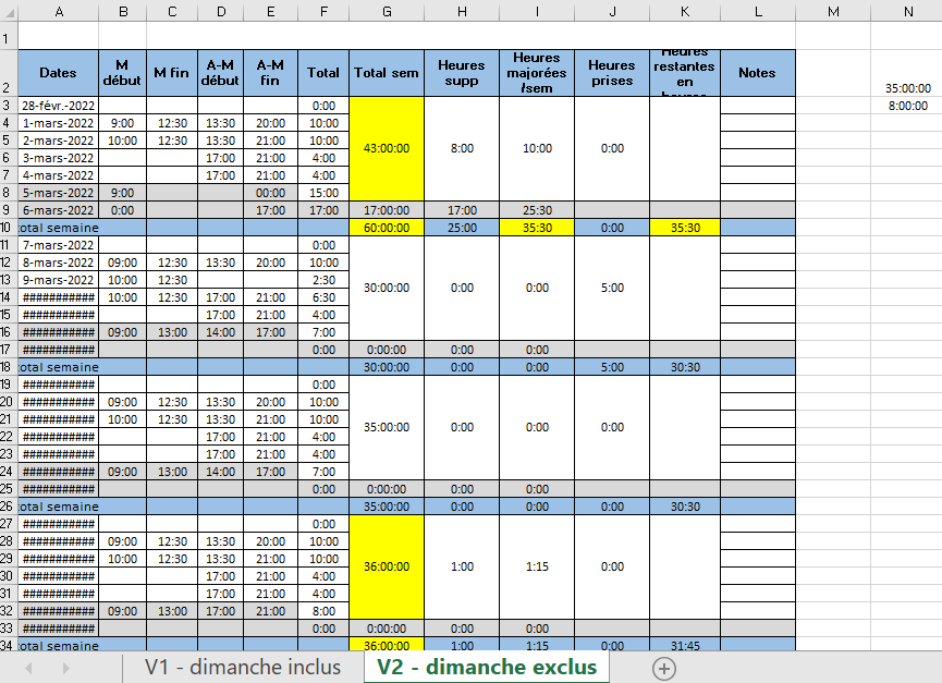 - Durée de travail Maxi journalière / hebdomadaire