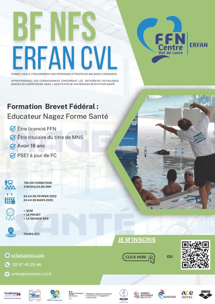 Tu apprends à adapter des séances d’activité physique aquatique pour des personnes avec des besoins de santé particuliers, à utiliser l’eau pour améliorer la mobilité, la respiration, l’endurance, le bien-être, à travailler en lien avec des professionnels de santé (médecins, kinés, etc.) et à mettre en place des parcours Nagez Forme Santé dans ton club ou ta structure.
